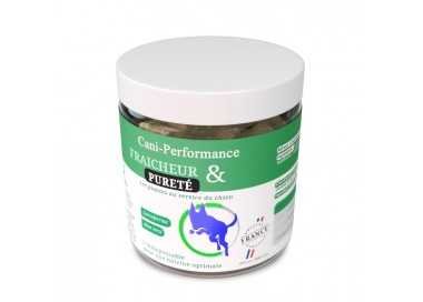 Le Fraîcheur & Pureté ✨🐶 de Caniperformance est un complément français 🇫🇷 naturel qui aide à réduire la mauvaise haleine et à maintenir une bouche saine. Idéal pour offrir fraîcheur et confort au quotidien, il convient à tous les chiens.