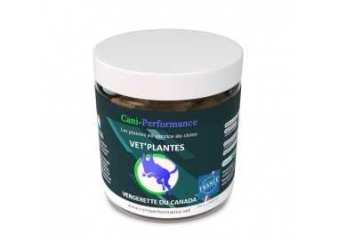 Le VET’Plantes Vergerette du Canada 🌿🐶 de Caniperformance est un complément français 🇫🇷 à usage vétérinaire, réservé aux vétérinaires formés à la phytothérapie. Formulé à 100 000 mg/kg de plantes, il se présente sous forme de friandises appétentes au poulet 🍗.